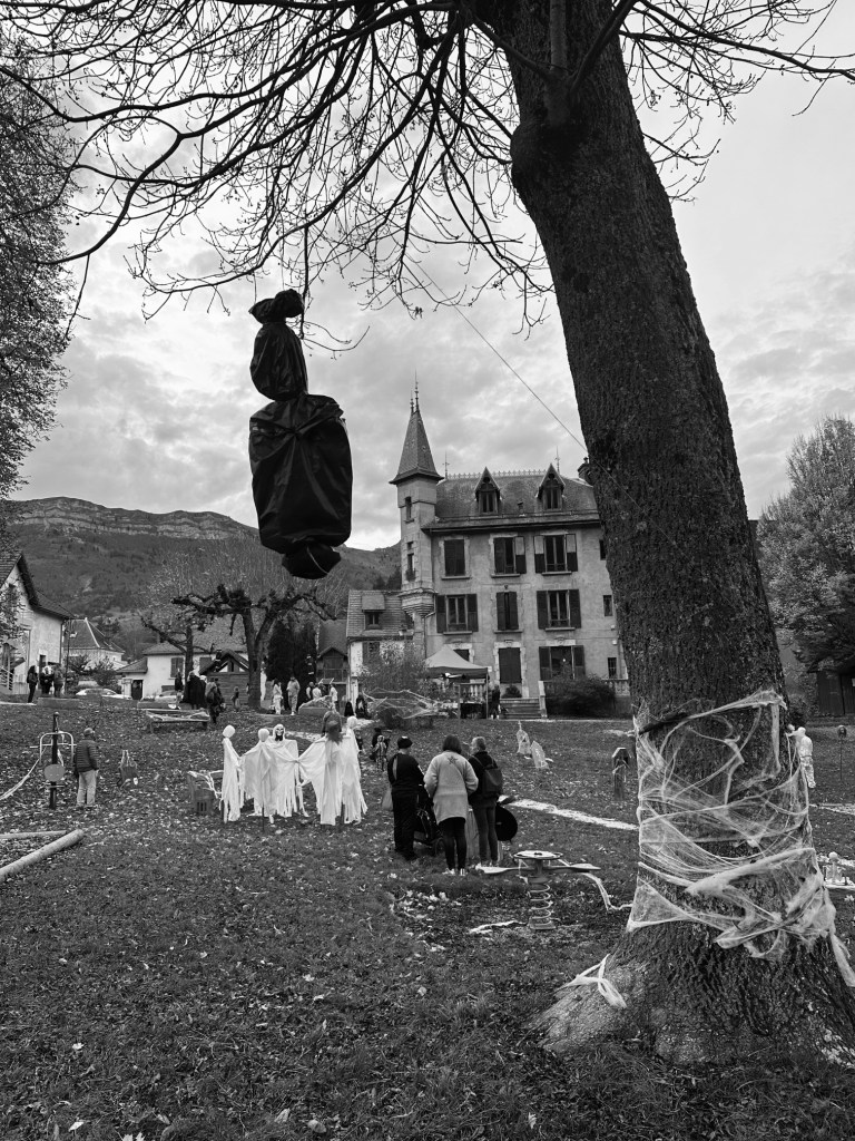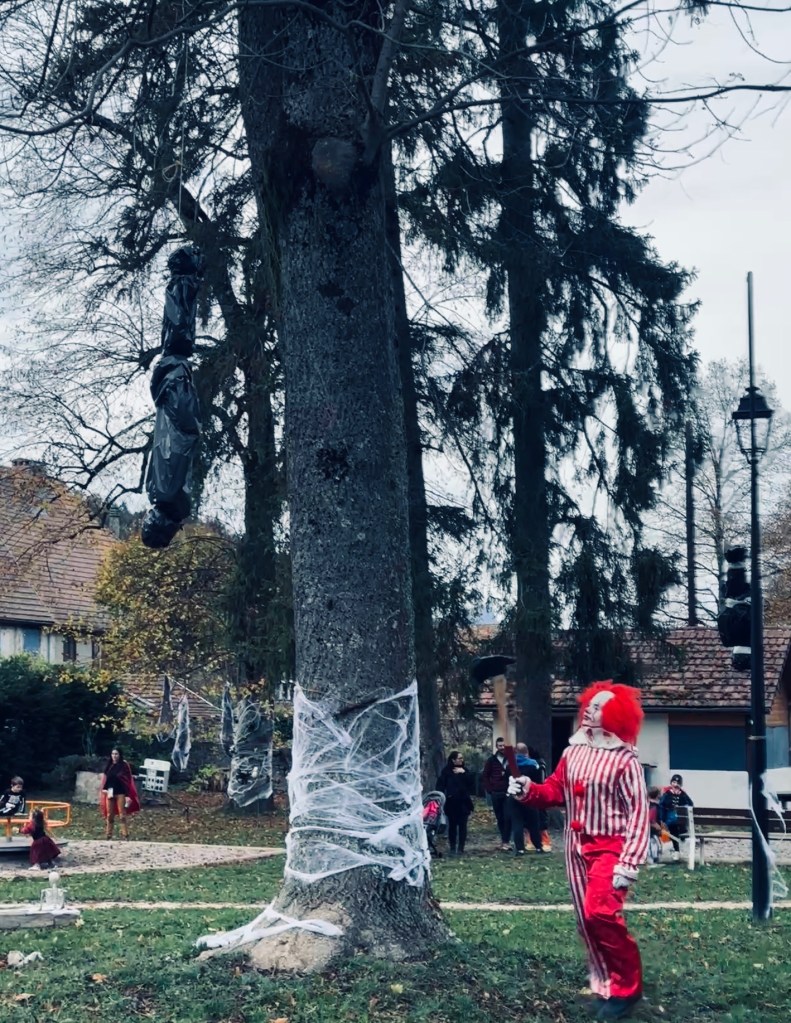 Les villages voisins organisaient aussi de petits évènements/ateliers que nous avons découverts et les filles ont pu passer une vraie soirée d’Halloween à toquer aux portes et chez les commerçants. Tout le monde jouait le jeu ce qui m’a valut quelques frayeurs avec un clown 🙂 le butin bonbons quant à lui a été remarquable !
